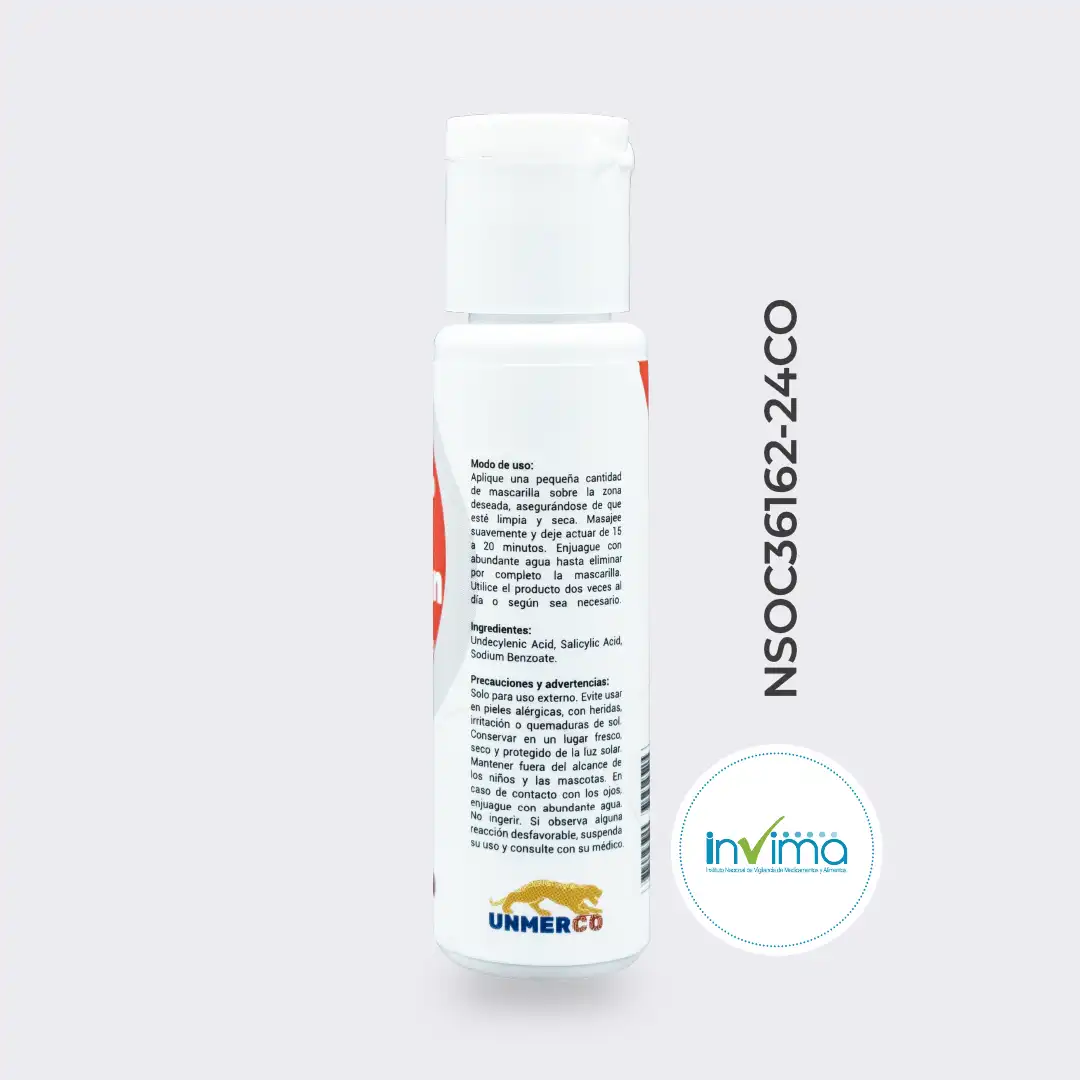 - Ácido salicílico – beta-hidroxiácido exfoliante, evita foliculitis.