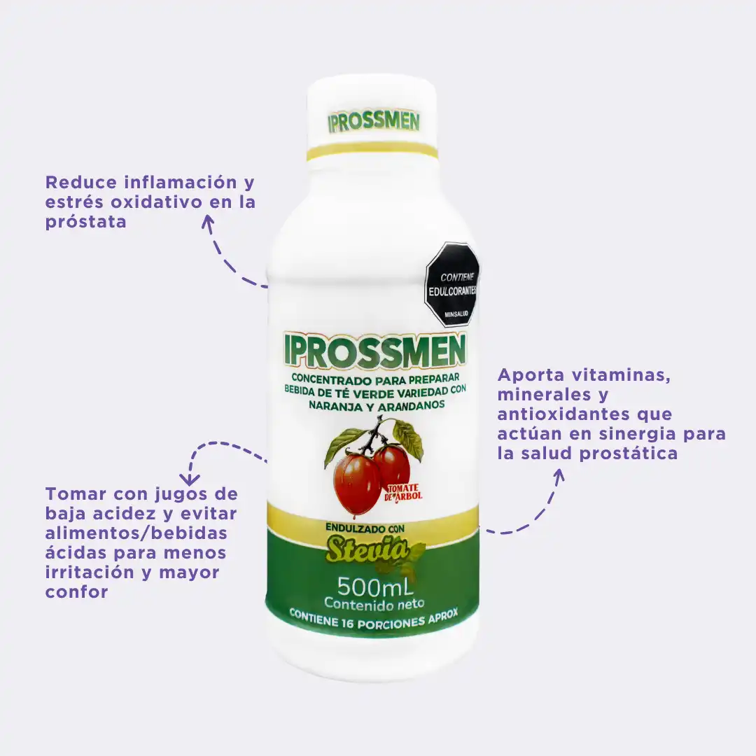 - Ingredientes Naturales: con una cuidadosa selección de ingredientes como naranja, arándanos, mandarina y jengibre, IPROSSMEN ofrece una fuente natural de vitaminas, minerales y antioxidantes. Estos nutrientes trabajan en sinergia para promover la salud prostática y mejorar el bienestar general.
