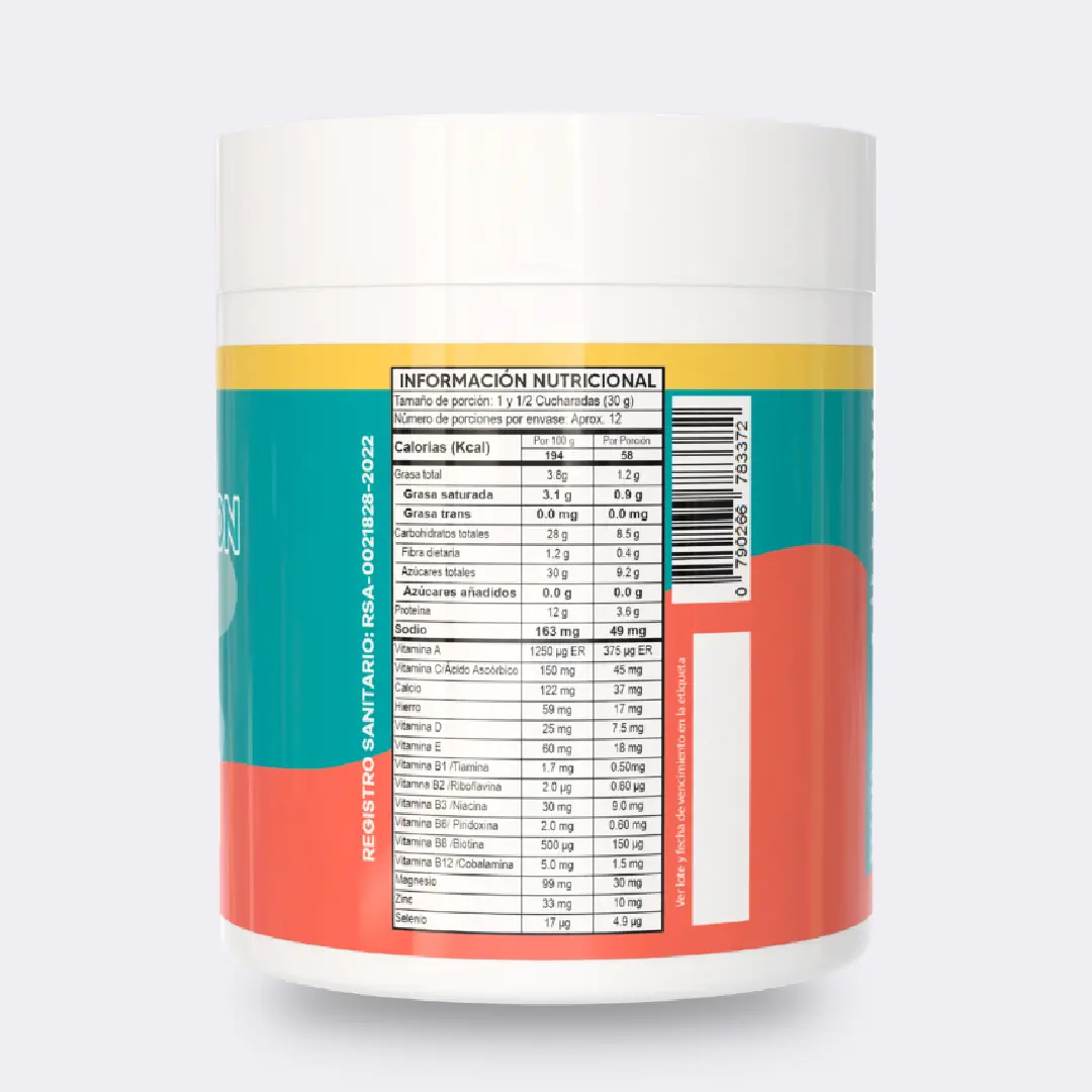 - Disolver 1 ½ dosificadoras (30 g) en 240 mL de agua (frío o caliente).